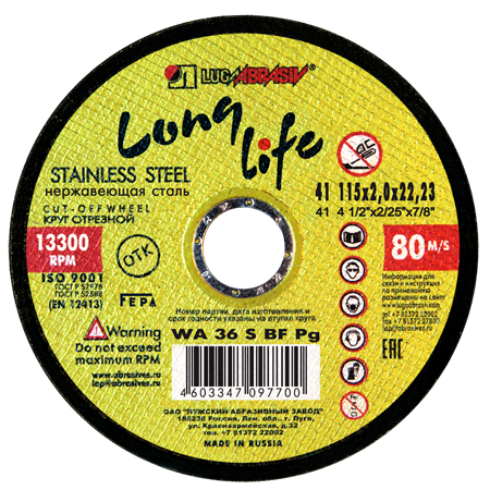 Круг отрезной по нержавеющей стали. Специальный состав кругов Inox, которые не содержат железа, серы и хлора, позволяет избежать “прижегов” разрезаемого материала и его загрязнения в процессе обработки.