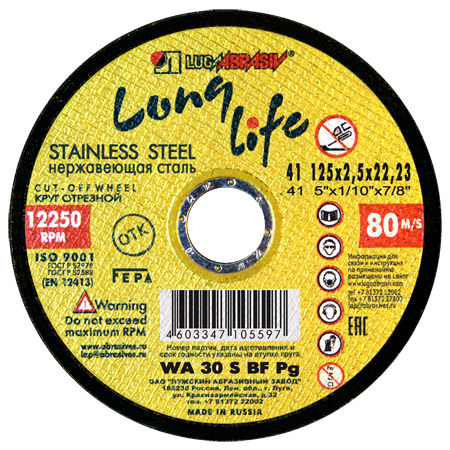 Круги отрезные на связке BF (бакелит усиленный) предназначены для высокопроизводительной резки деталей и конструкций из различных марок стали и быстрорежущей стали. Особенно эффективны при резке тонкостенного профиля и листового металла. Специальный состав кругов, которые не содержат железа, серы и хлора, позволяет избежать “прижега” разрезаемого материала и его загрязнения в процессе обработки.