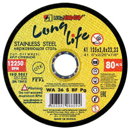 Круг отрезной по нержавеющей стали. Специальный состав кругов Inox, которые не содержат железа, серы и хлора, позволяет избежать “прижегов” разрезаемого материала и его загрязнения в процессе обработки.