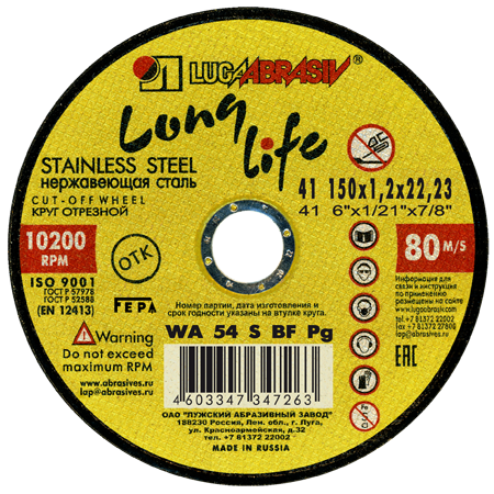 Круг отрезной 150х1,2х22,2 long life нерж