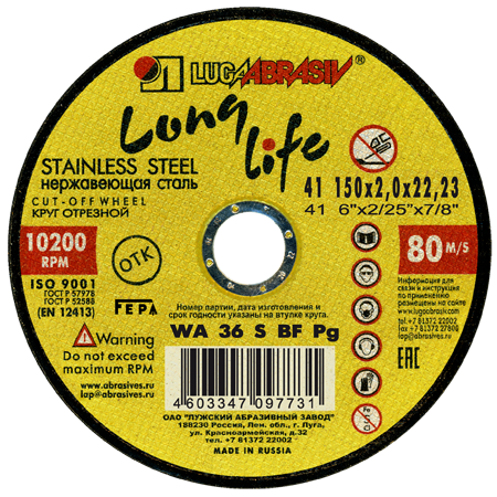 Круг отрезной 150x2x22,2 long life нерж