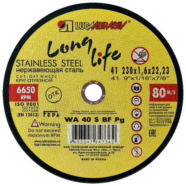 Круг отрезной 41 230*1,6*22,2 long life нерж
