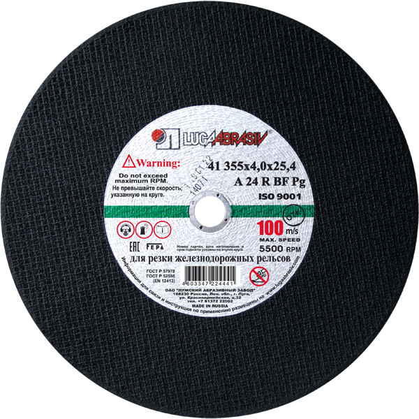 Круг отрезной 355х4х25.4 для ж/д рельс